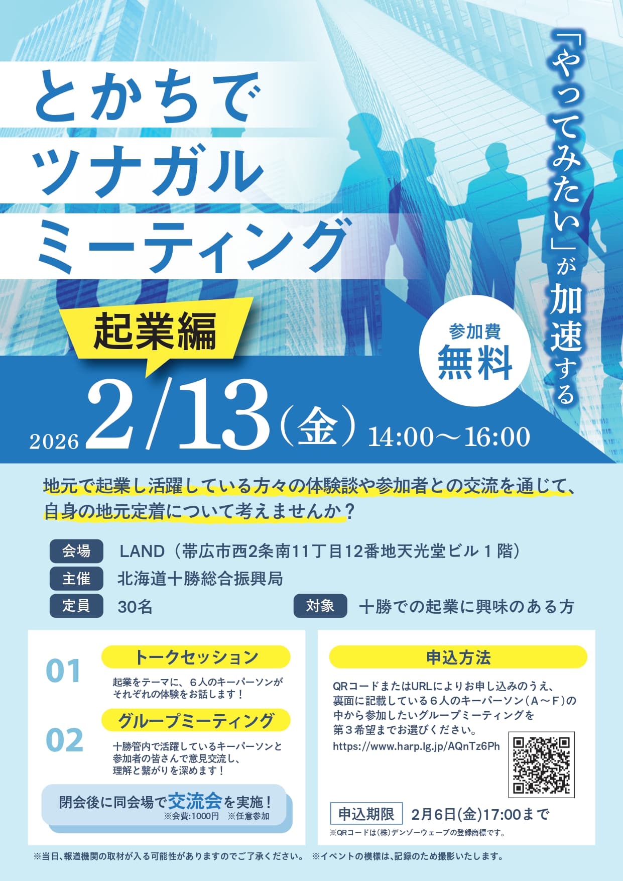 1. 十勝で“起業のリアル”を知る1日!「とかちでツナガルミーティング〈起業編〉」開催