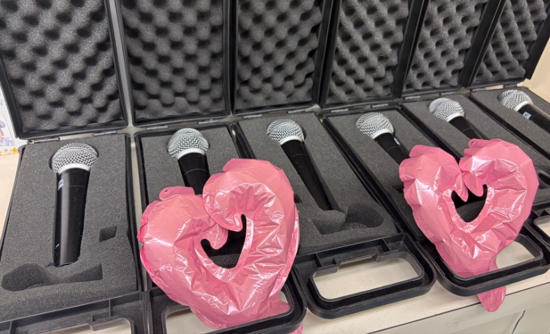 こうしたサポートは、楽曲面にとどまりません。取材当日、インタビューを行った建物内では、学校の仲間たちがライブに向けたグッズ作りを進めていました。舞台裏の手作業が、3人の背中を確かに支えているように見えました。