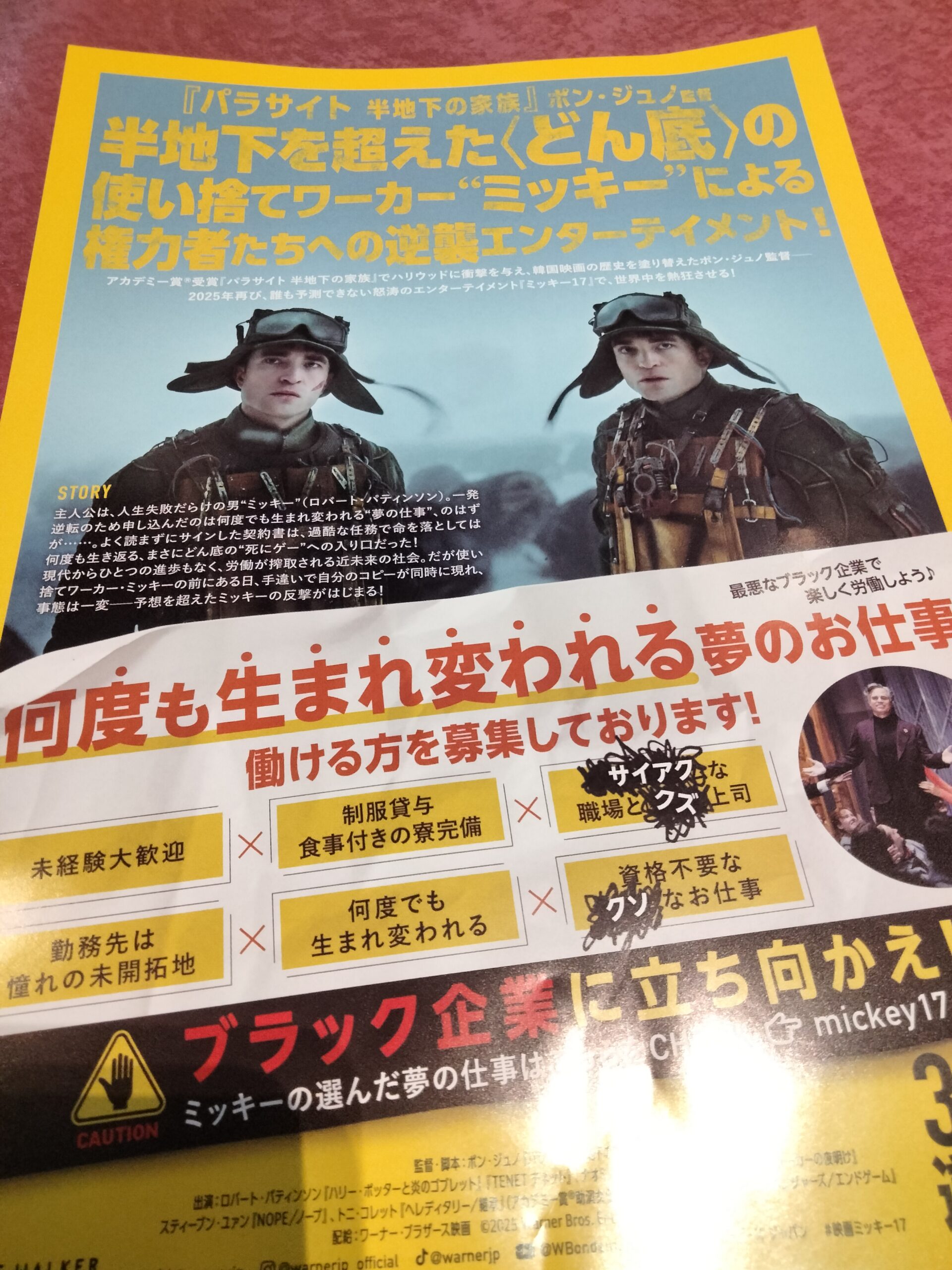 話自体には乗り切れなくても、腐女子仲間が「ミッキー17」と「ミッキー18」に萌えて、アップを始めた点に関しては理解できたのも、良かったです。(分からない人は分からないままで無問題)