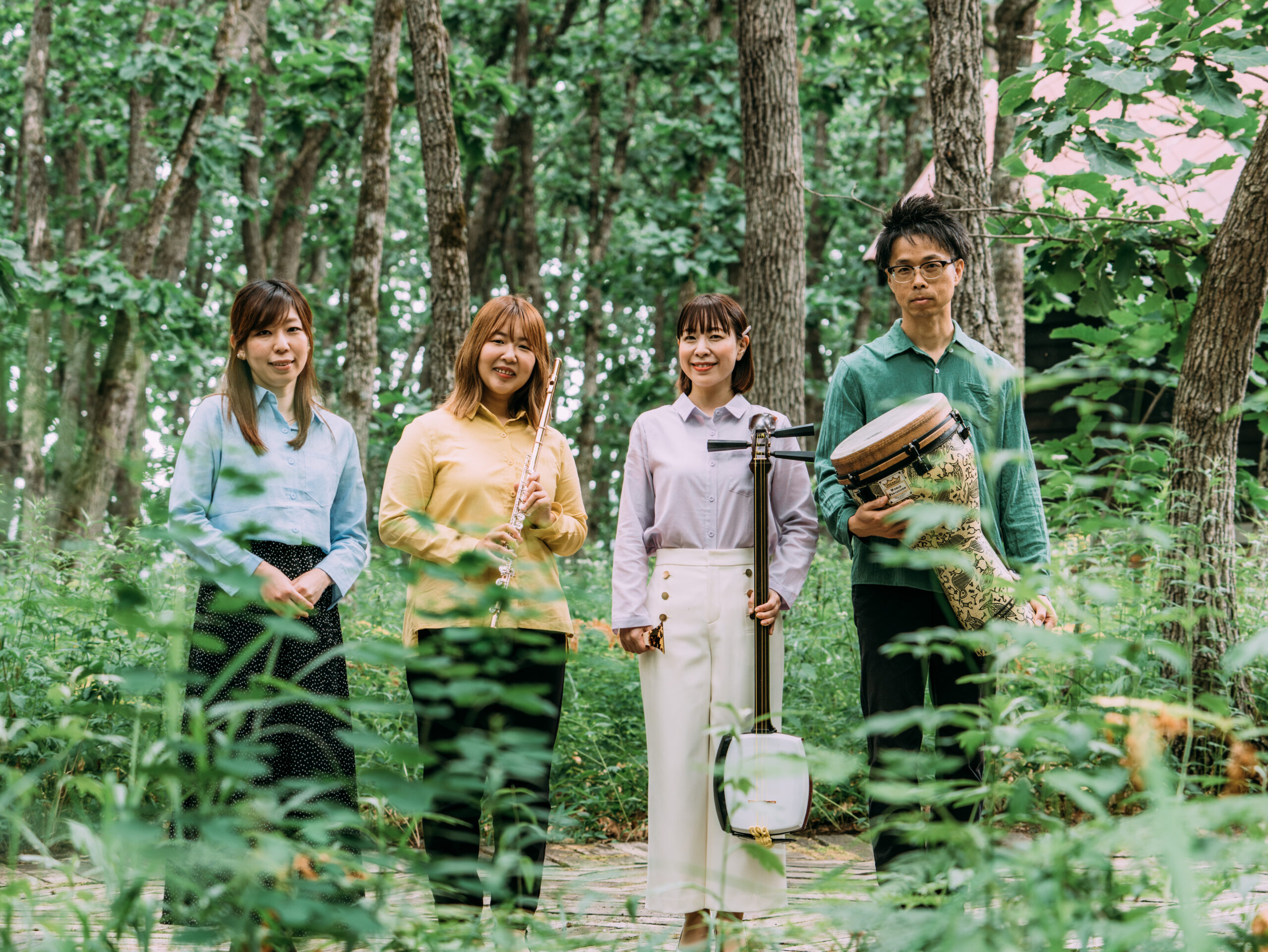 実は、3月の演奏が結成以来初めての正式公演となるエゾピリカ。メンバーは帯広のピアニスト浜上恵梨子さん、三味線・民謡の加藤恵理奈さん、音更のフルート奏者橋本麗美さん、芽室のパーカッション奏者山中正裕さんの4人組。三味線の和の要素と、ピアノ、フルートのクラシック要素にパーカッションが加わる音色は唯一無二の音を奏でます。