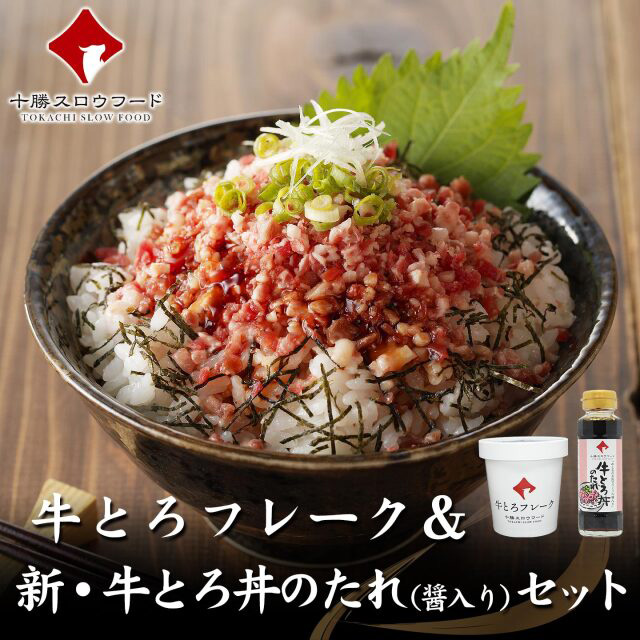 初めて牛とろフレークを試す方には、専用たれ(新・牛とろ丼のたれ/醤油ベース)とのセットをおすすめしています。