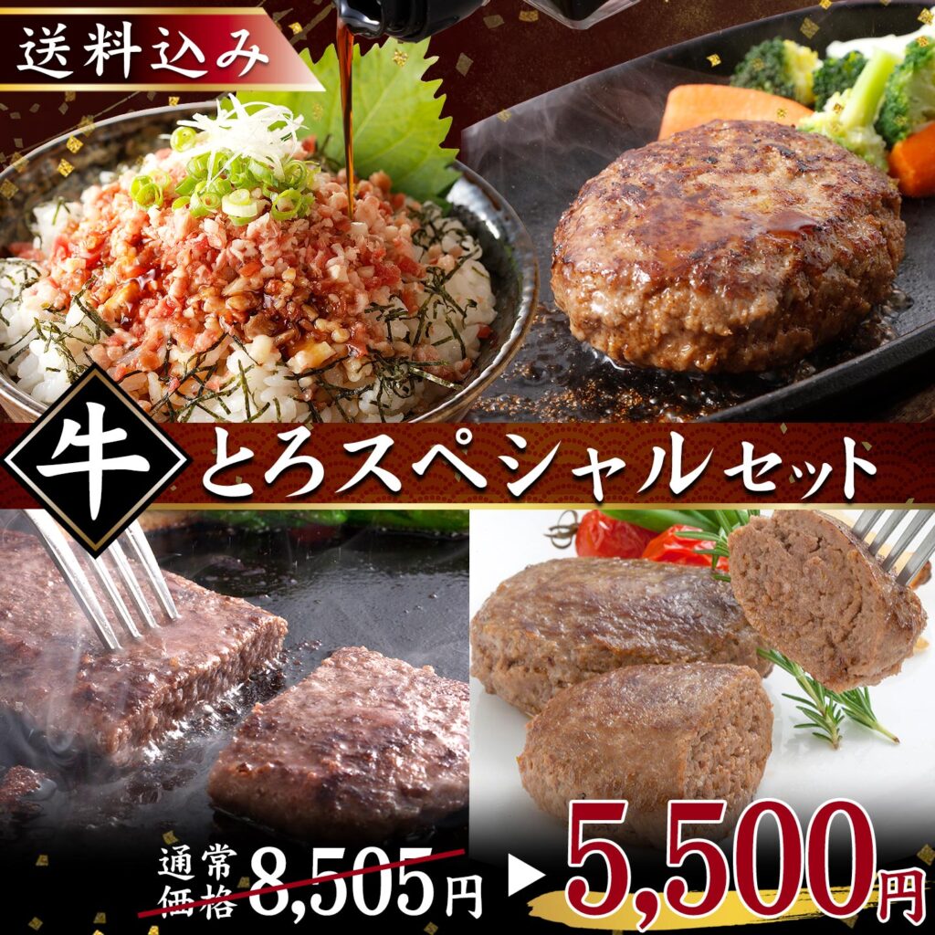 牛とろフレークや人気ハンバーグを詰め合わせた、特別価格のセットが登場!気になる商品が一度に購入できちゃいます。