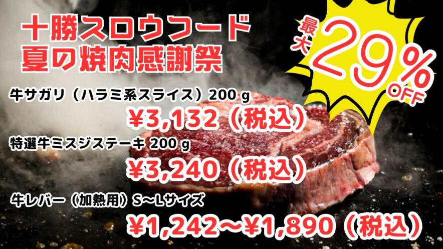 【最大29%オフ】十勝スロウフード|夏の焼肉感謝祭 7/11(金)12:00 ▶ 7/19(土)12:59