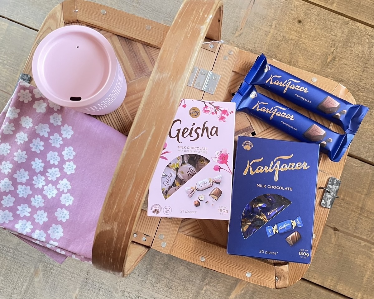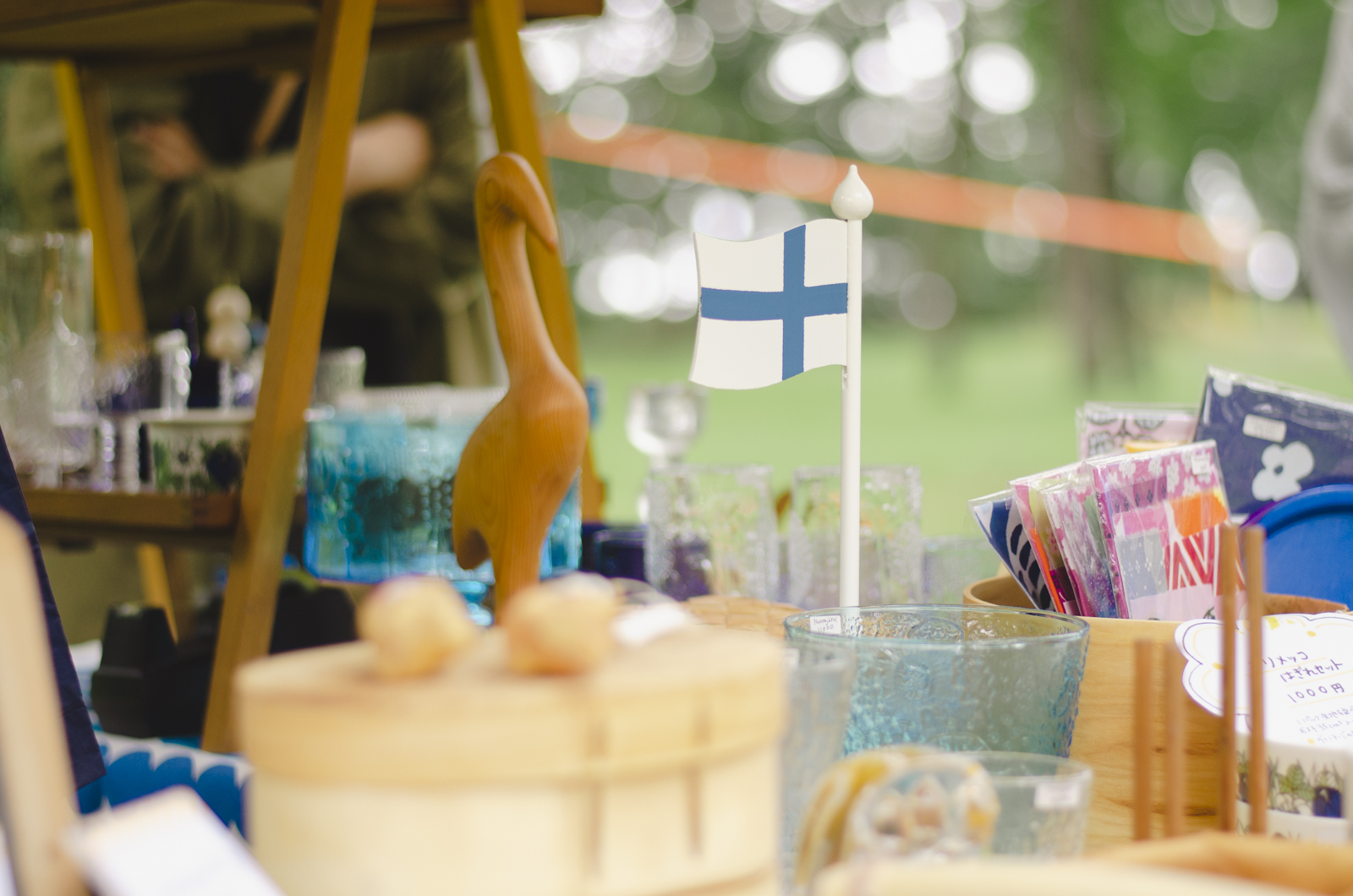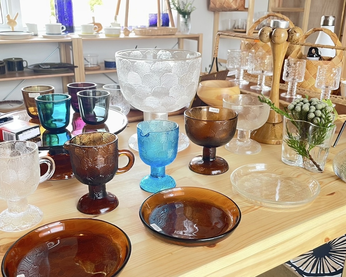 現在のイチオシは、涼しげでかつ繊細なデザインが美しいフィンランド食器。また、滑らかな口溶けが魅力のFazerのチョコレードなどもお手に取れます。