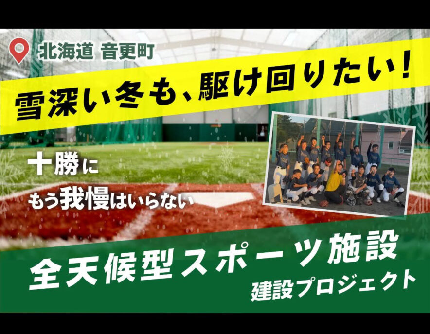 冬は氷点下、夏は猛暑。北海道・十勝の子どもたちは“季節”という見えない壁と戦っています。野球もサッカーも、やりたい時に思い切りできない――その常識を終わらせるために、音更町と株式会社アスリートベース十勝は、全天候型・多用途スポーツ練習施設の開設を目指し、ふるさと納税を活用したクラウドファンディング(GCF)をスタートしました。募集は2025年11月1日〜2026年3月31日。目標は5,000万円。あなたの寄付が、子どもたちの“今日の練習”と“明日の成長”を守ります。
